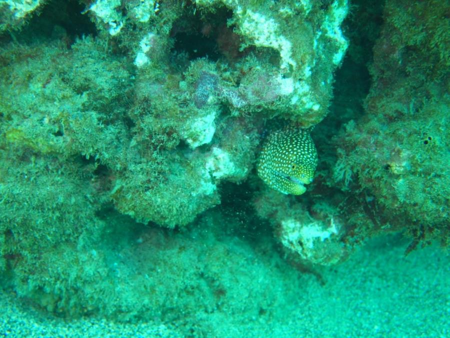 Eel hanging out on Sea Tiger wreck on Oahu, HI
