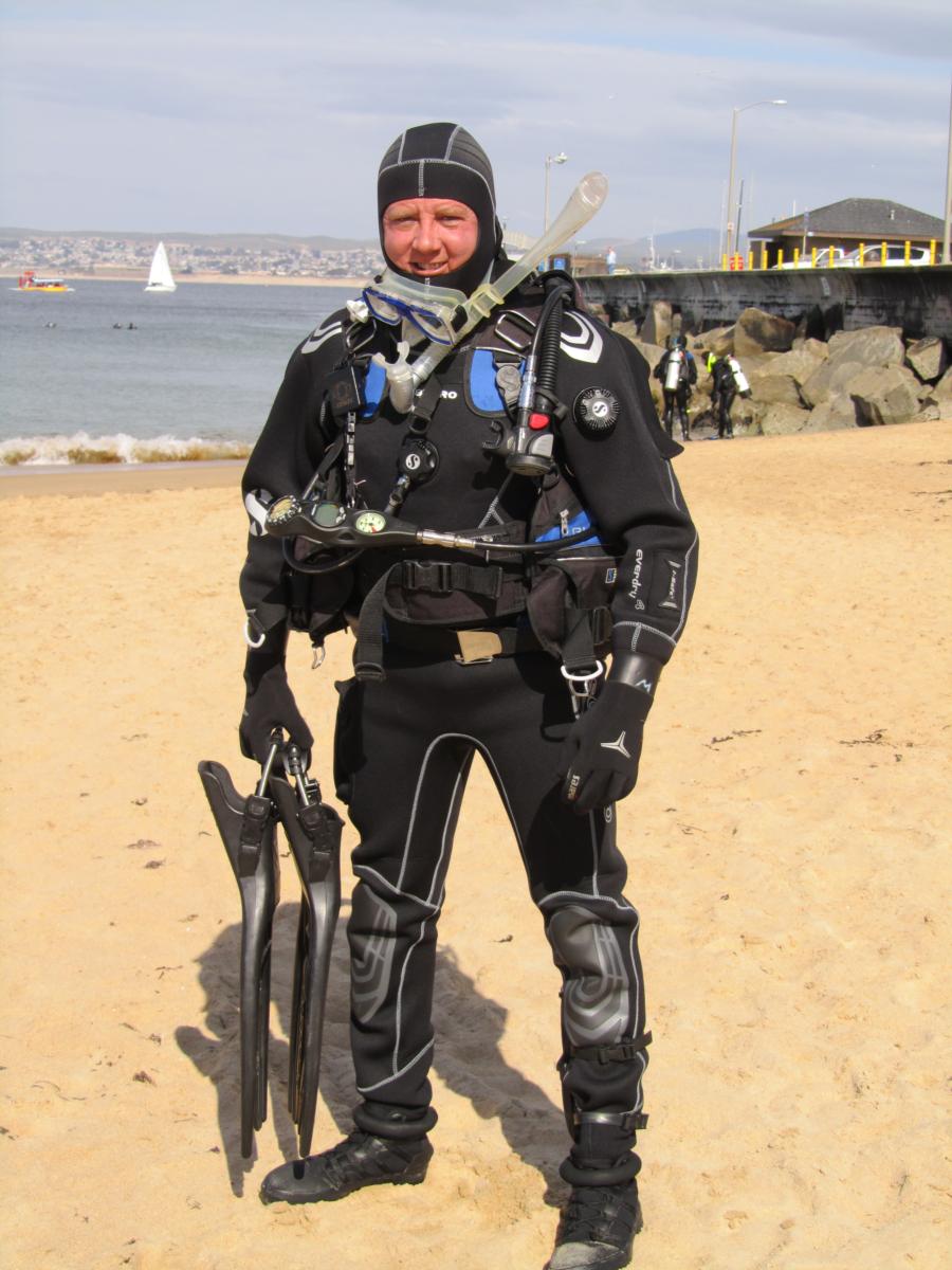 My instructor Rick (on the left) and myself (right) after a dive with dry suits.